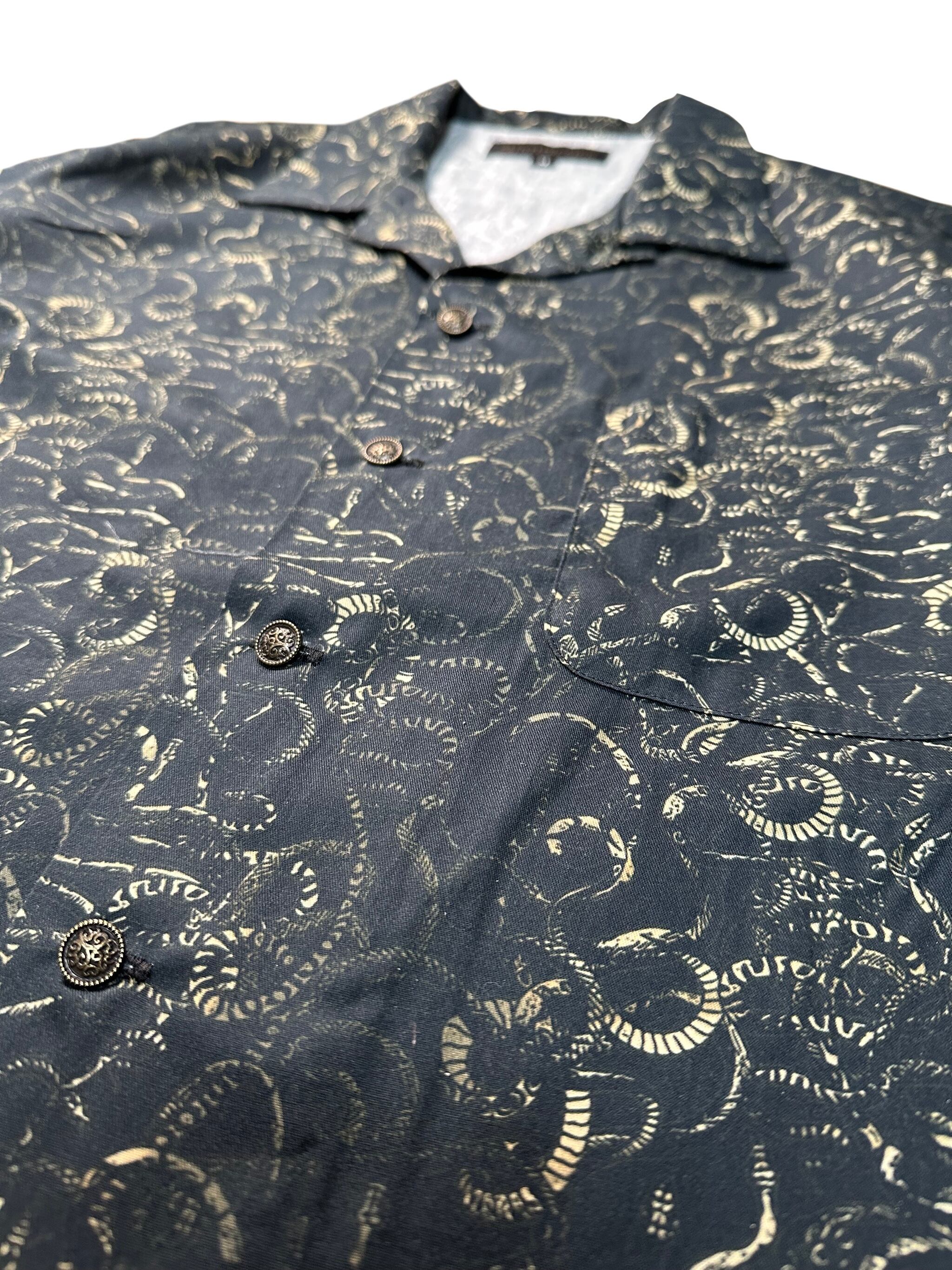 The standout feature is its original all-over graphic: a snake motif rendered in tonal contrasts to create a vertical stripe effect.