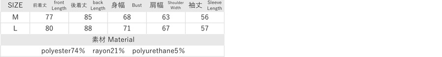 ポリエステルの自然な風合いに、レーヨンの落ち感と、ストレッチ性による軽やかな着心地です。