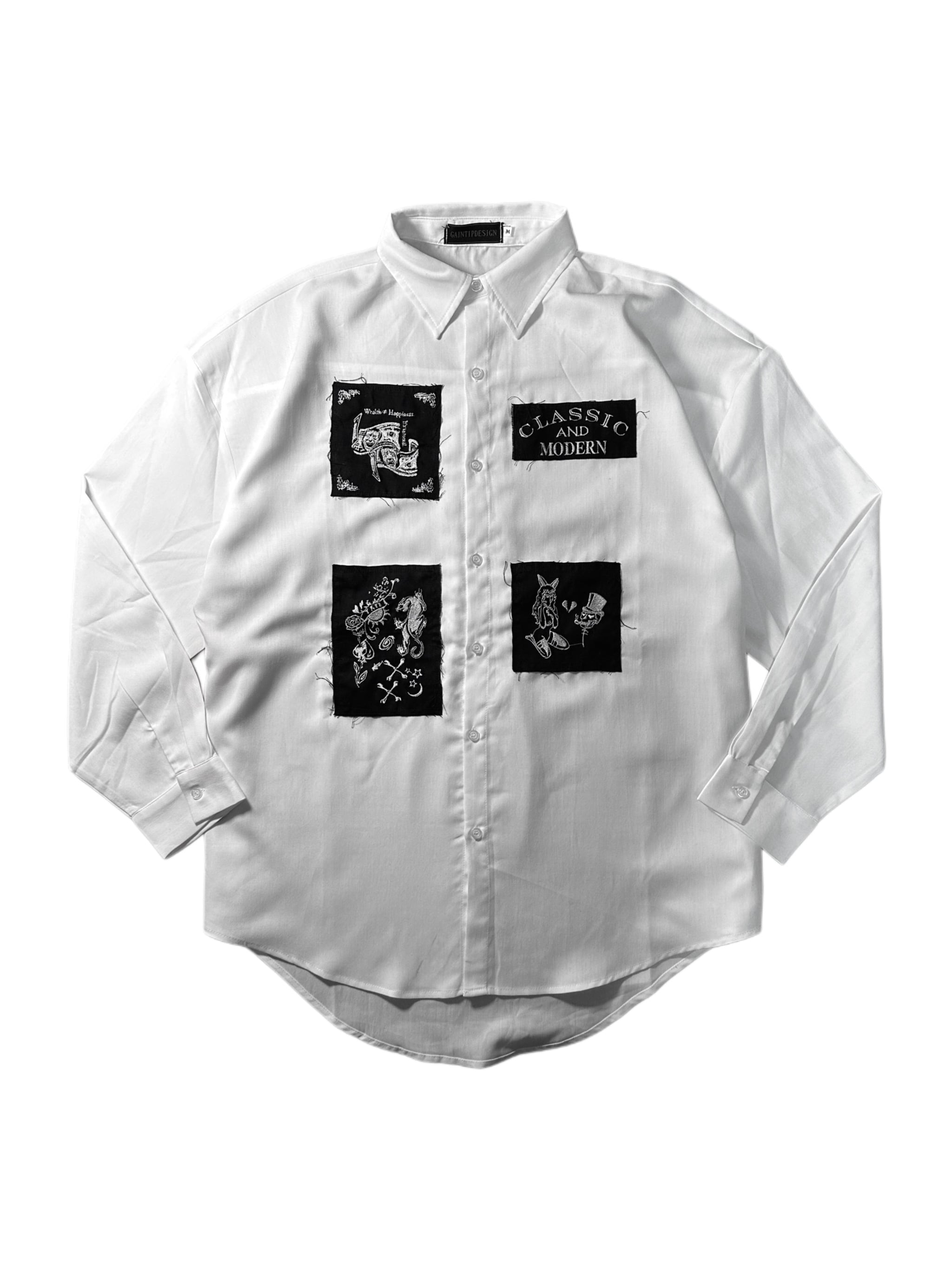 フロントに配置された4枚のパッチは、窓のような見え方で、視覚的バランスを追求したデザインは、単なる装飾ではなく、世界観の断片を映すフレームとして機能します。