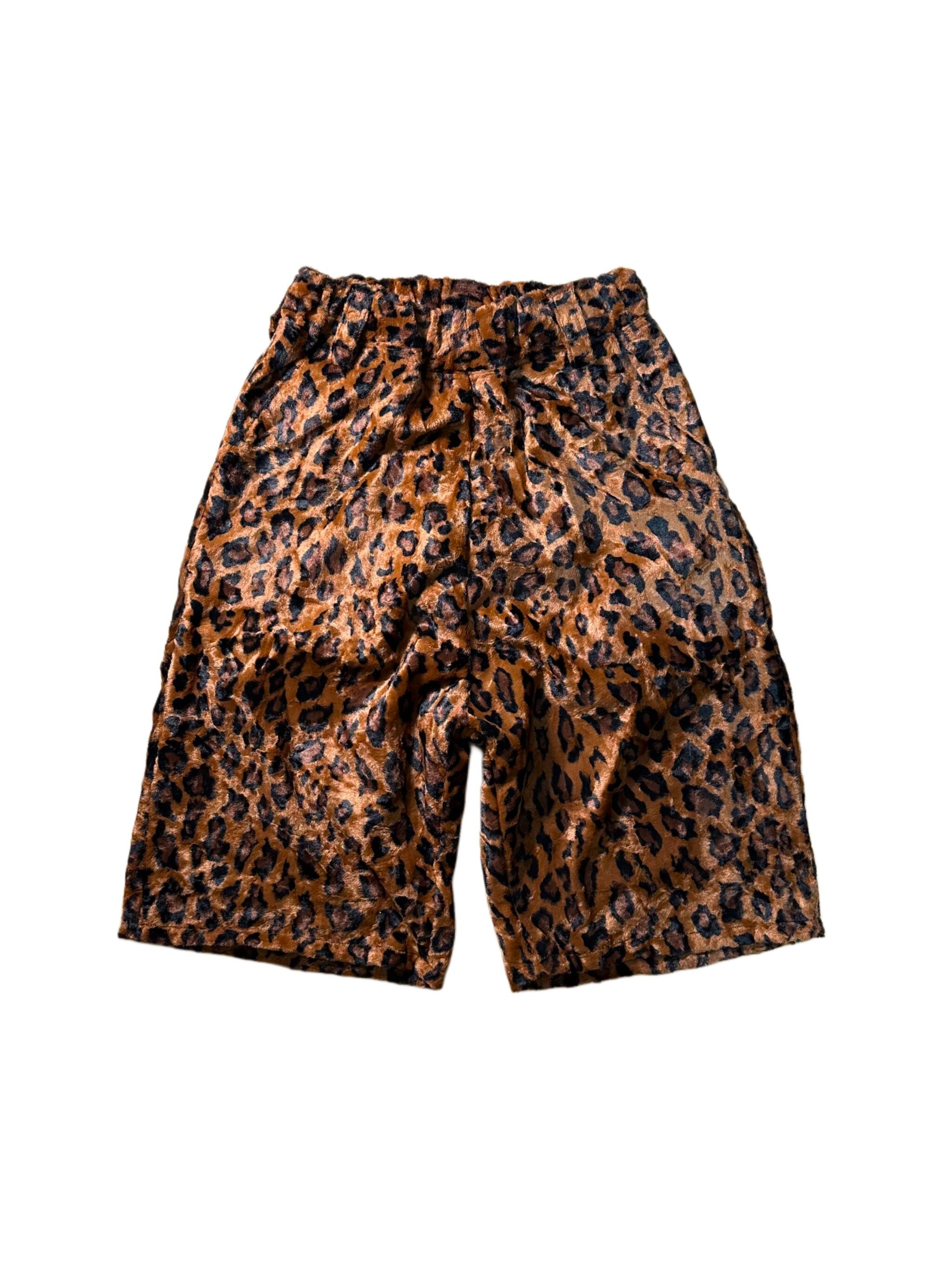 Relaxed shorts crafted from a velour fabric that radiates a refined sheen, adorned with a striking leopard pattern.
