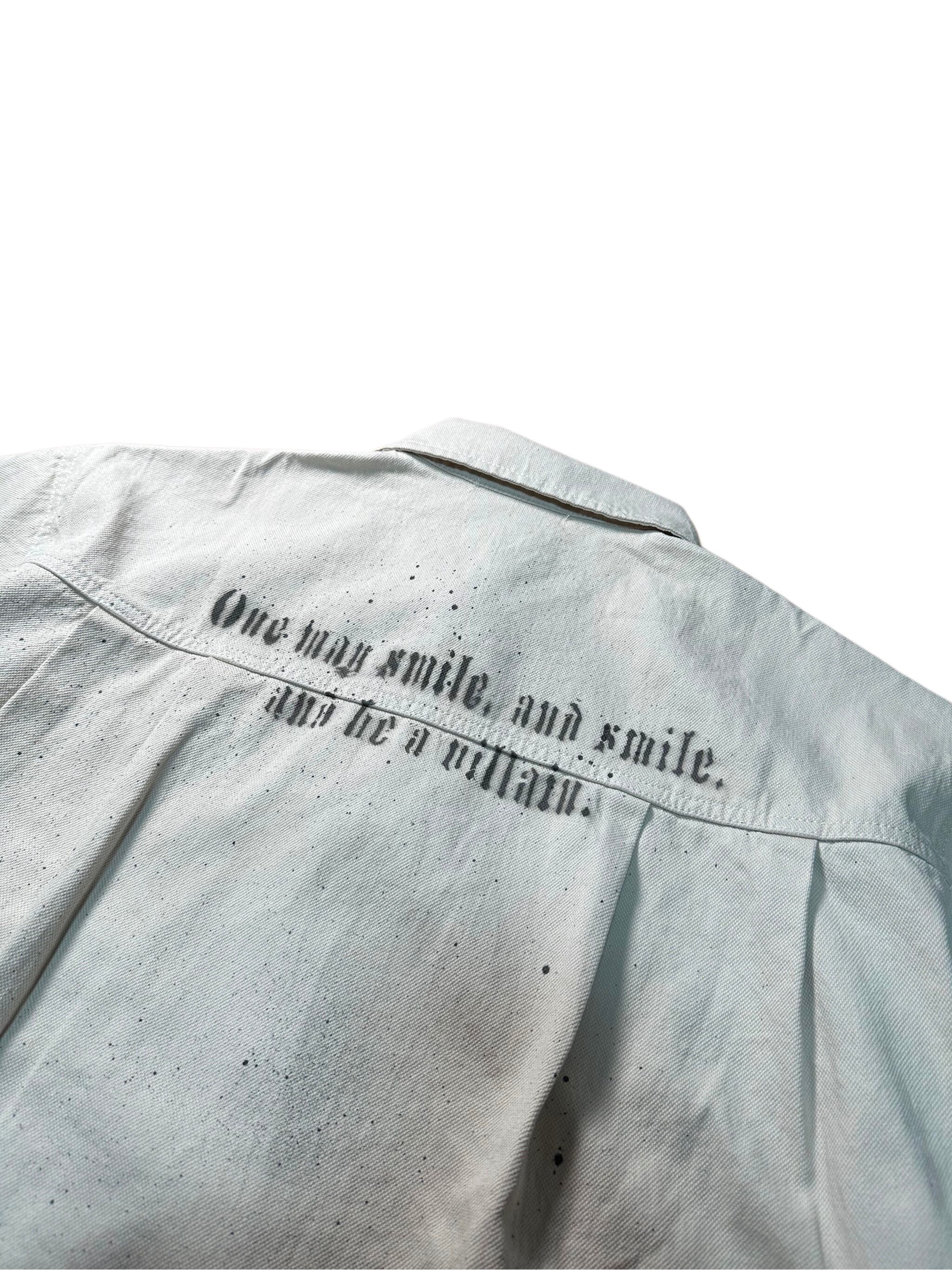 Metal button details and stencil prints placed across the back pay homage to vintage military wear—delivering a rugged yet composed impression.