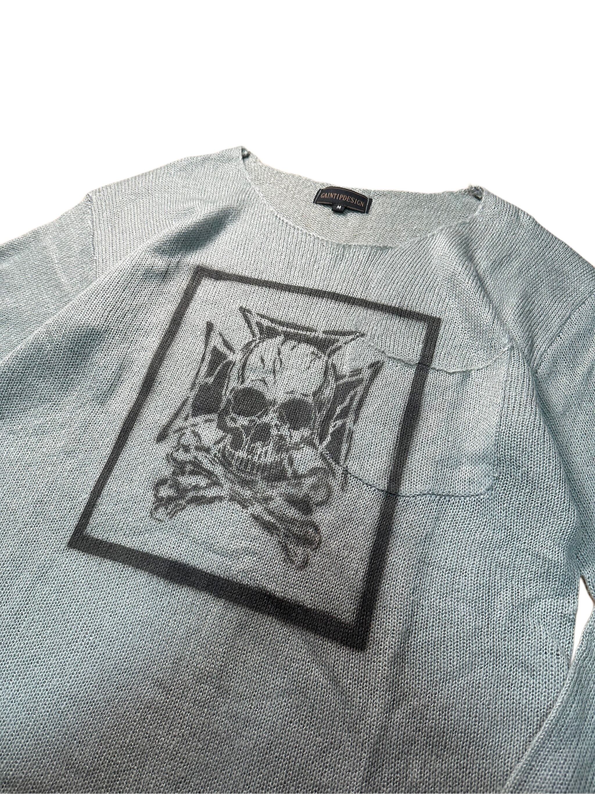 The loosely knitted jersey structure creates a mesh-like transparency, making it an ideal lightweight knit for early autumn. When layered as an inner piece, the stenciled Iron Cross and skull graphic delivers striking impact and a bold statement.