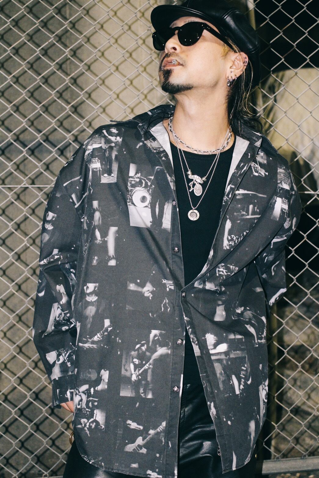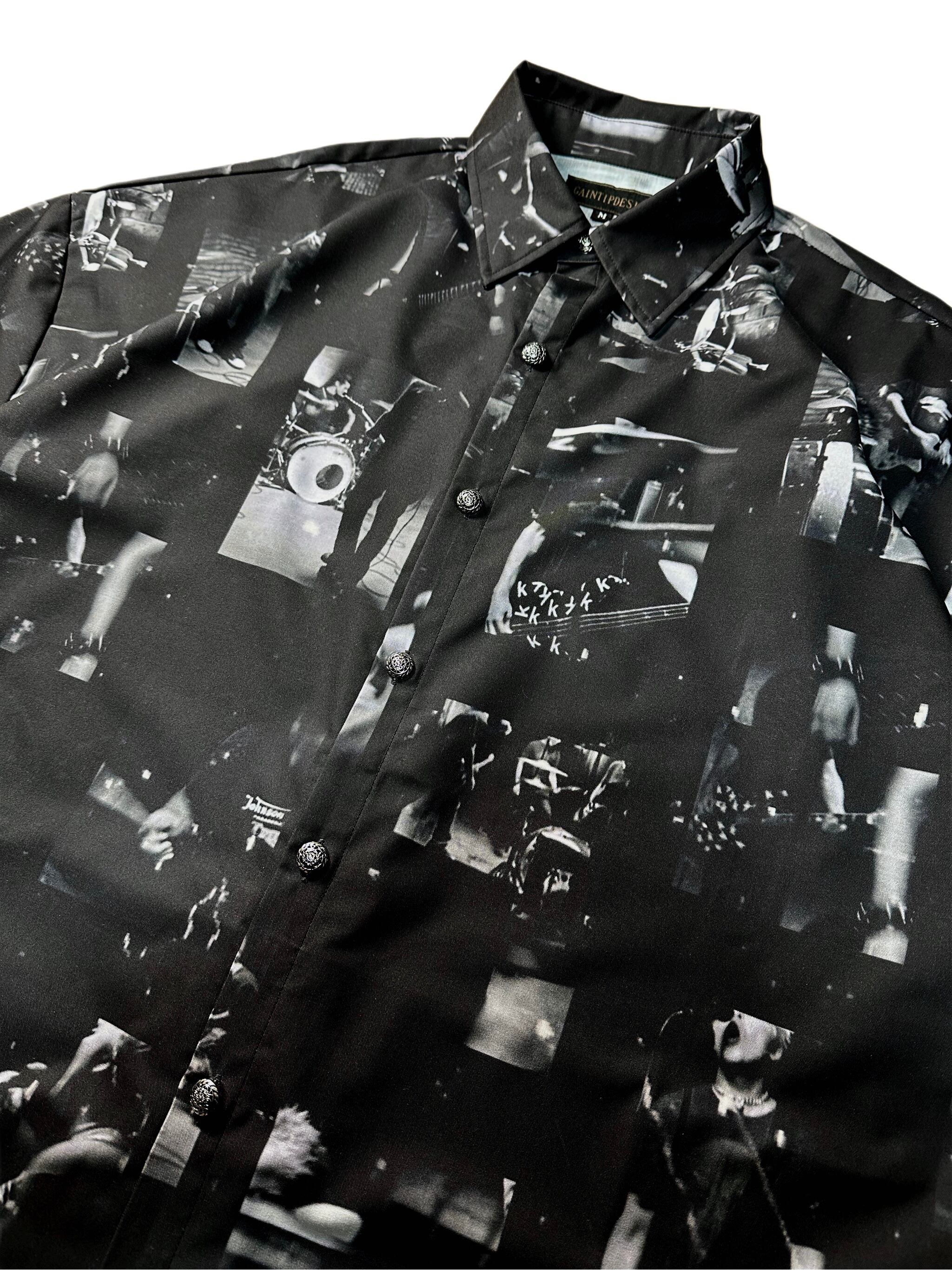 音が形を失う瞬間を、映像の断片として再構築したフォト総柄シャツ。