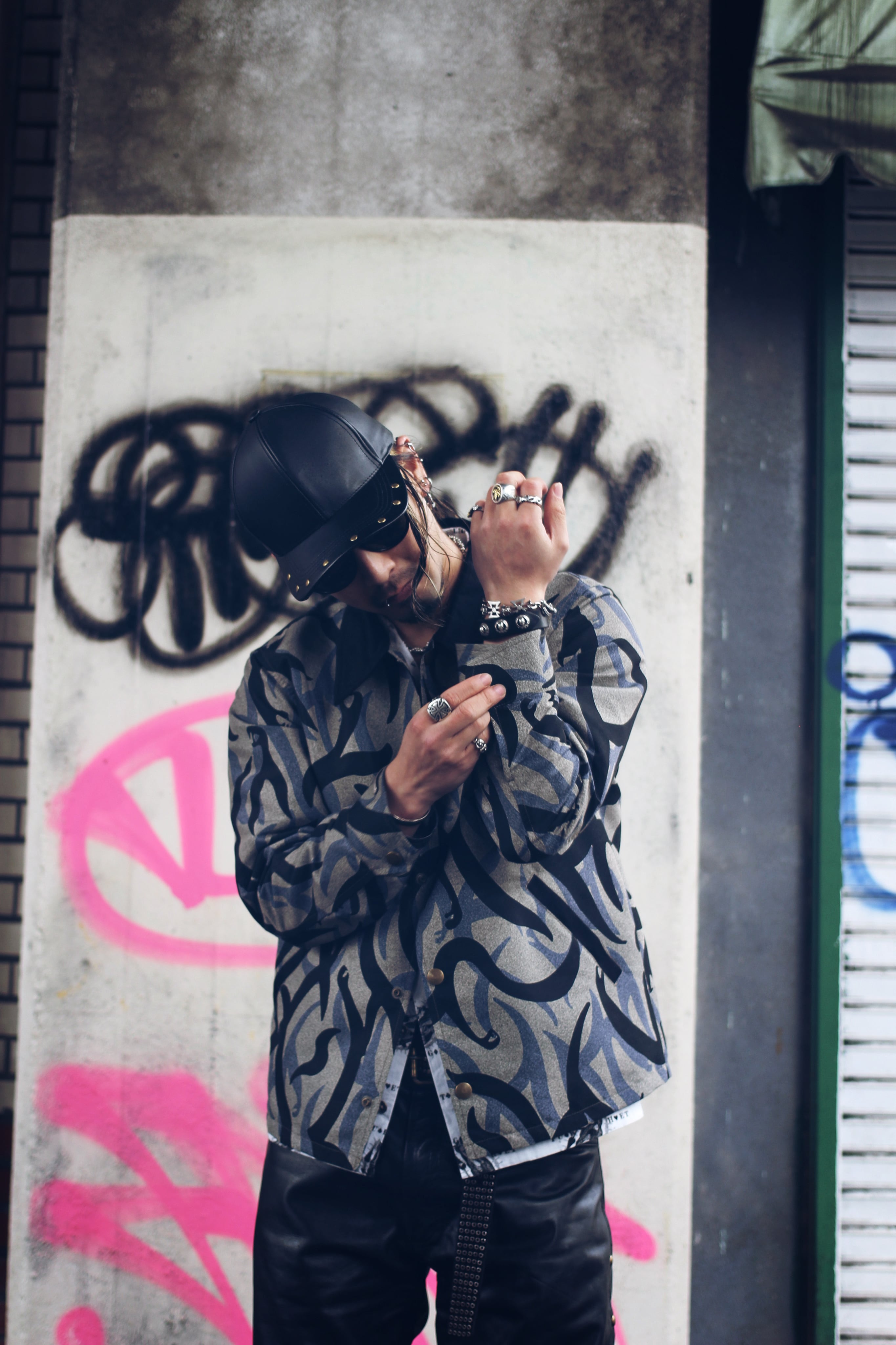 撥水ポリエステル生地に、ブランドオリジナルの“トライバルスネークカモフラ”を大胆に落とし込んだワークジャケット。