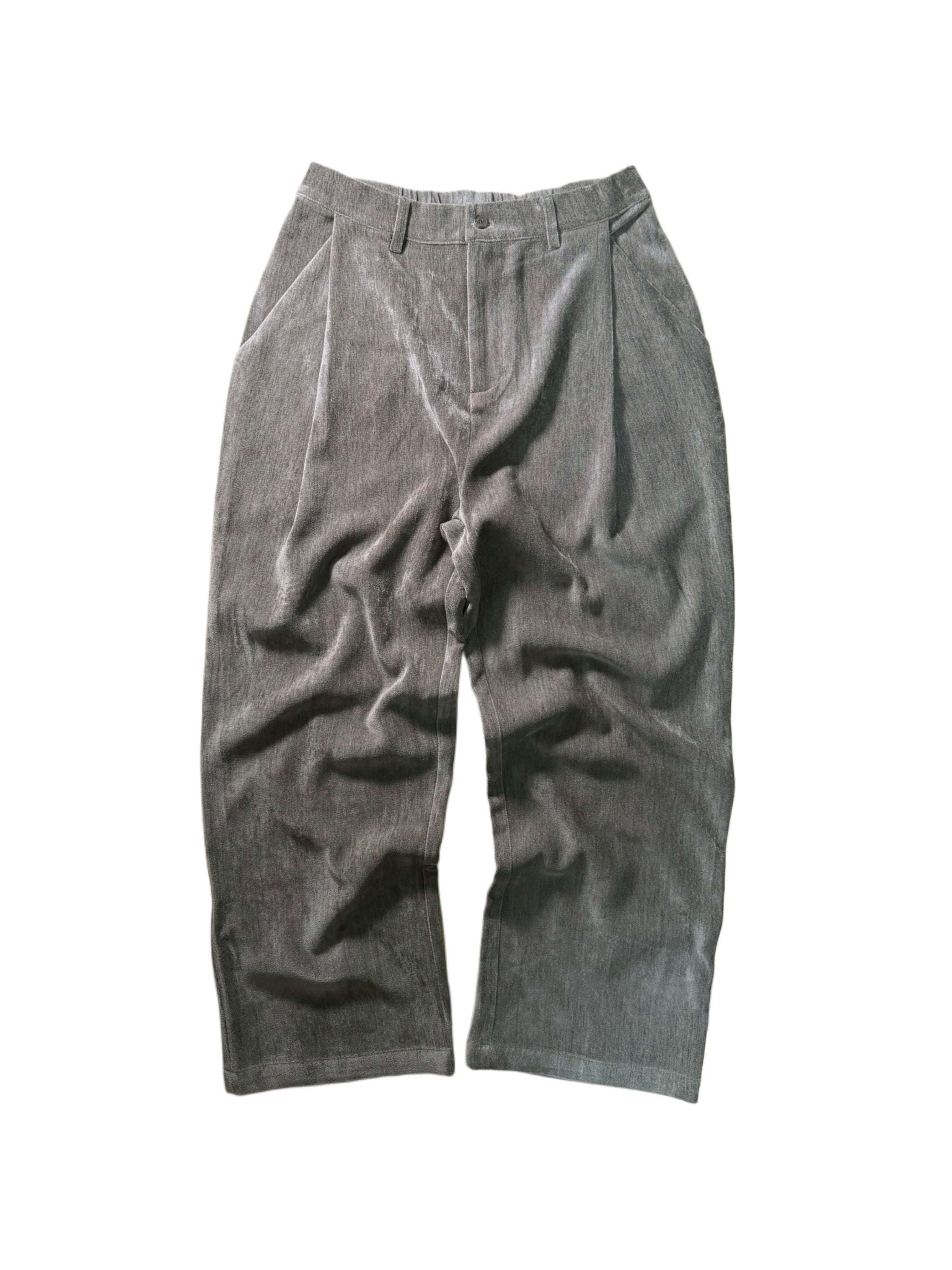 ベルベット特有のしなやかな落ち感と、わずかな光沢が色気を漂わせるスラックス。