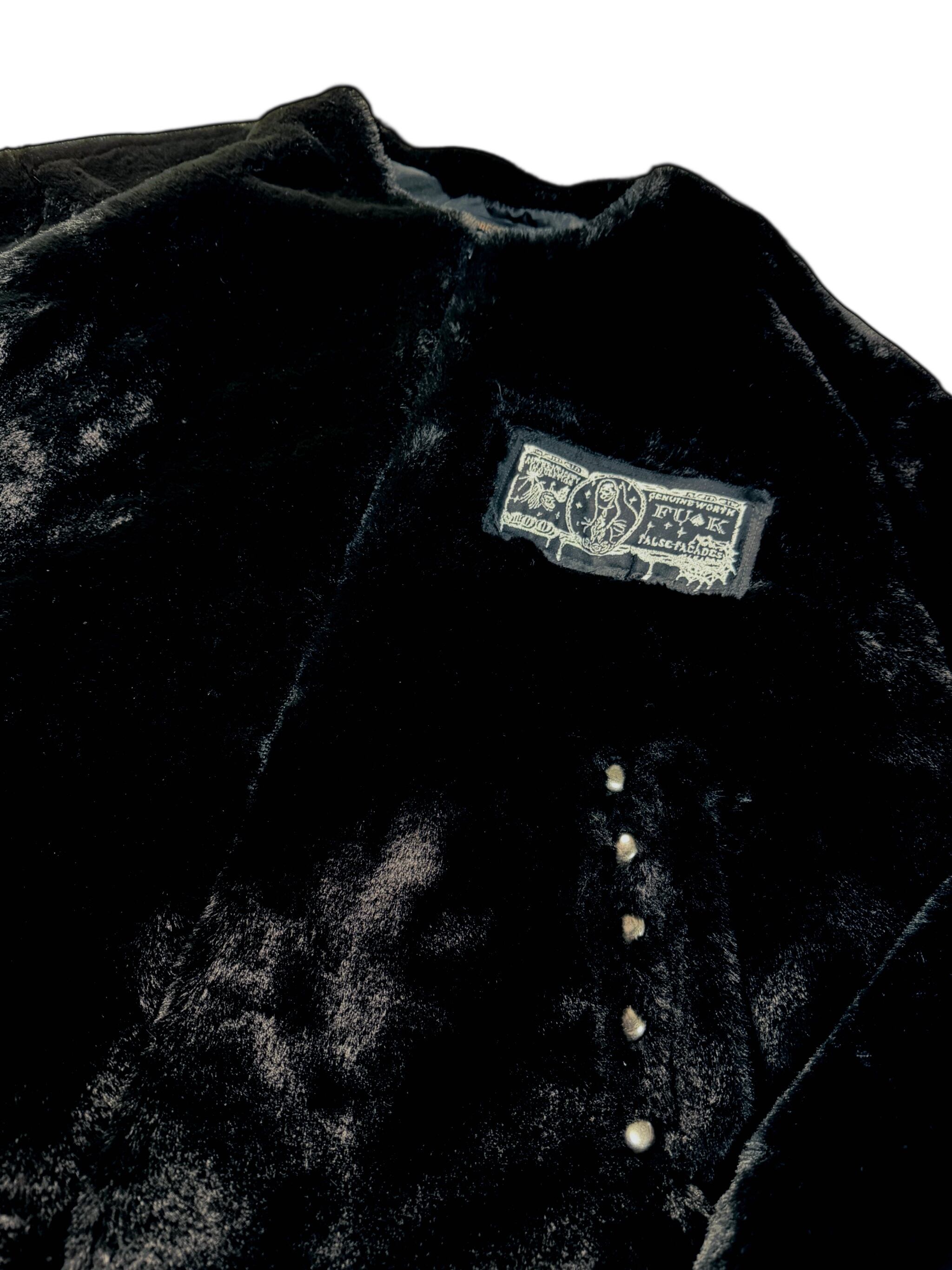 This blouson is crafted from a highly lustrous faux fur, creating deep shadows with every movement and allowing ruggedness and sensual gloss to coexist in a single piece.