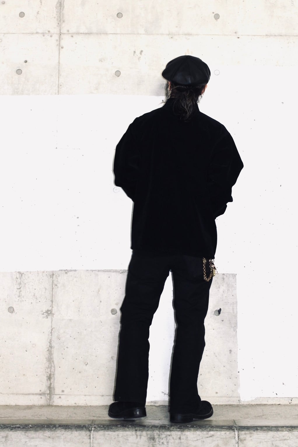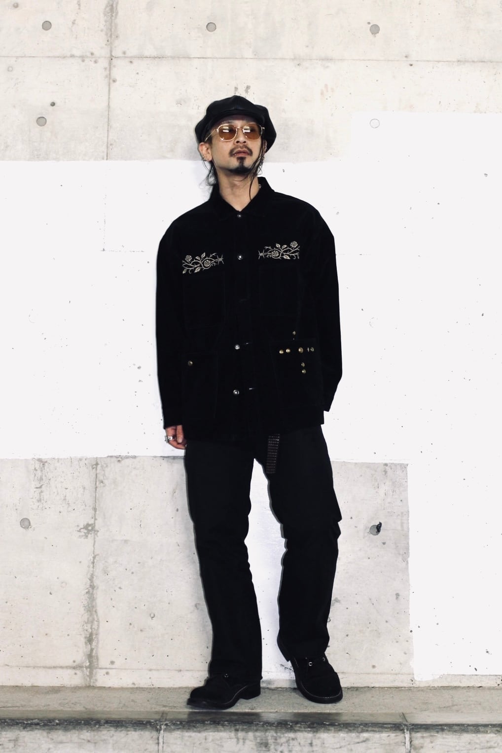 The design draws from the structure of coveralls that were treated as beer coats in the modern era, using a restrained four-pocket front and a deliberately understated layout to achieve an elegant presence within a rude aesthetic.