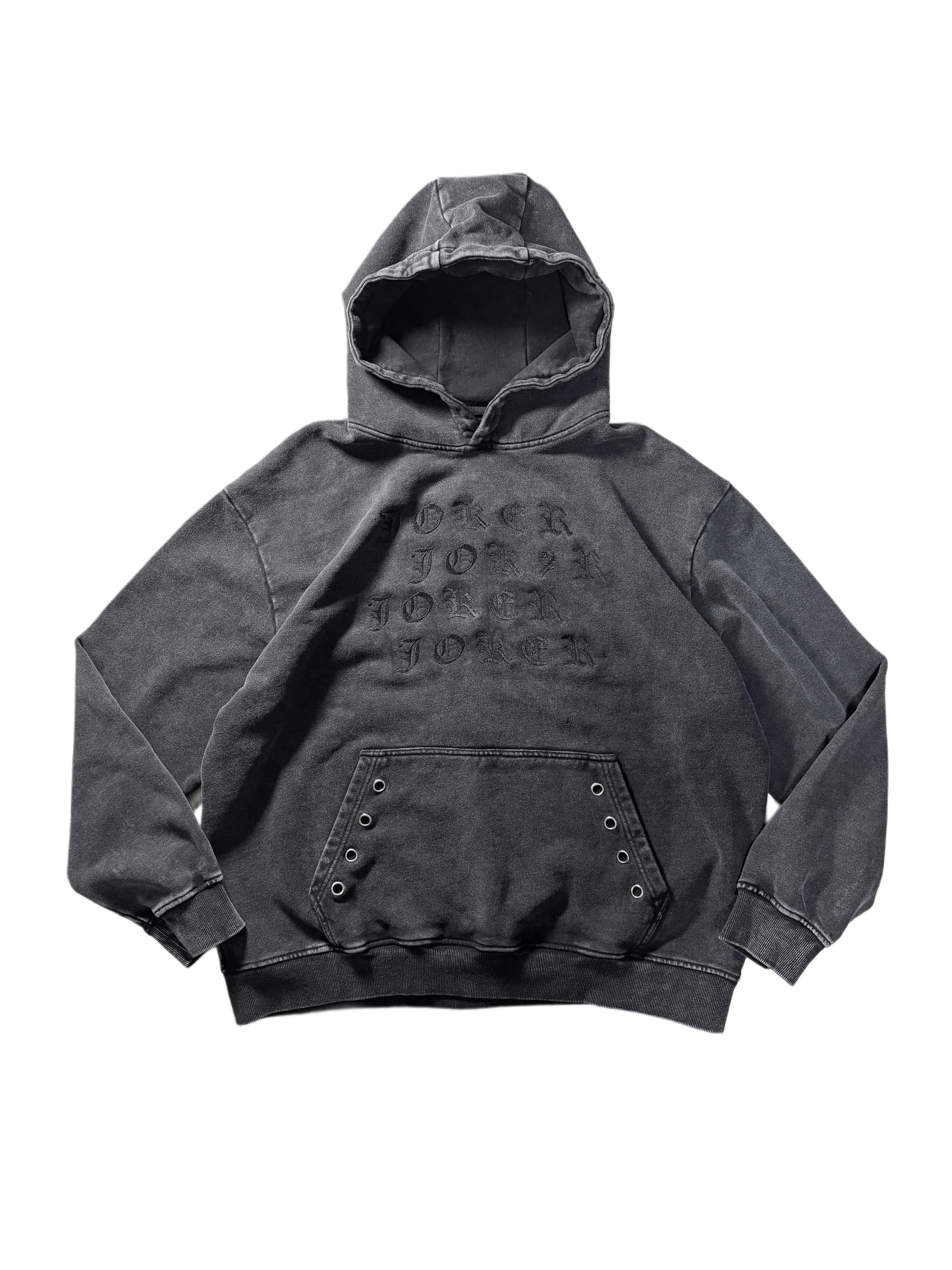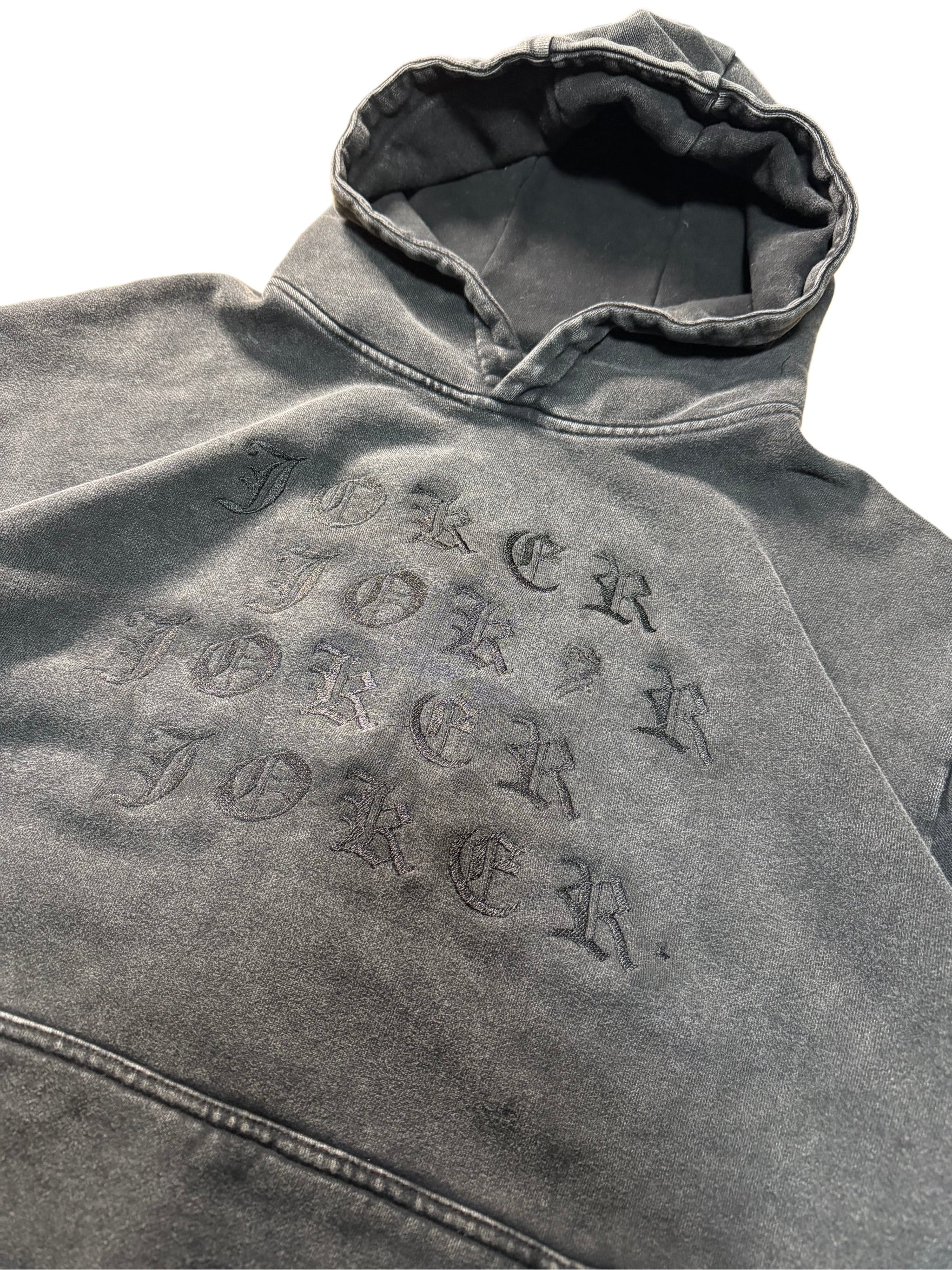 The JOKER embroidery on the chest is inspired by the Joker as an entity that exists outside of binary oppositions such as good and evil, black and white.