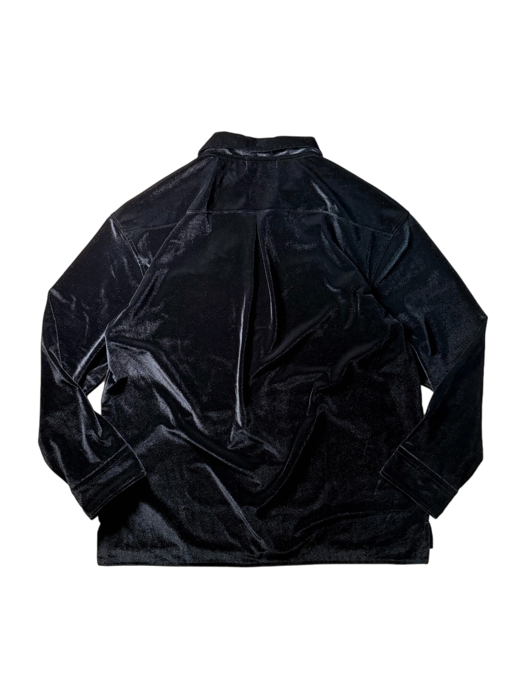 An open-collar shirt crafted from richly lustrous velour fabric.