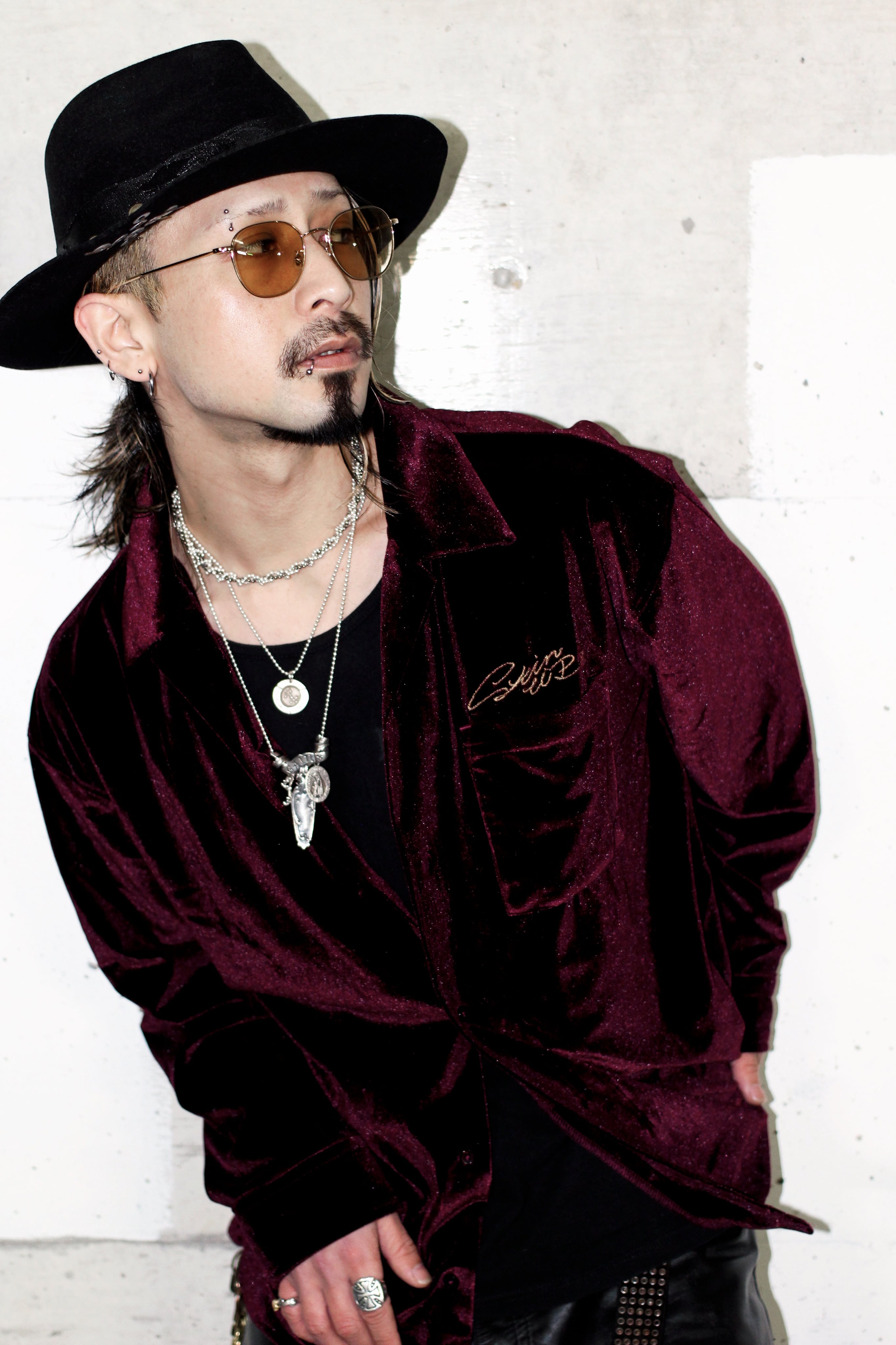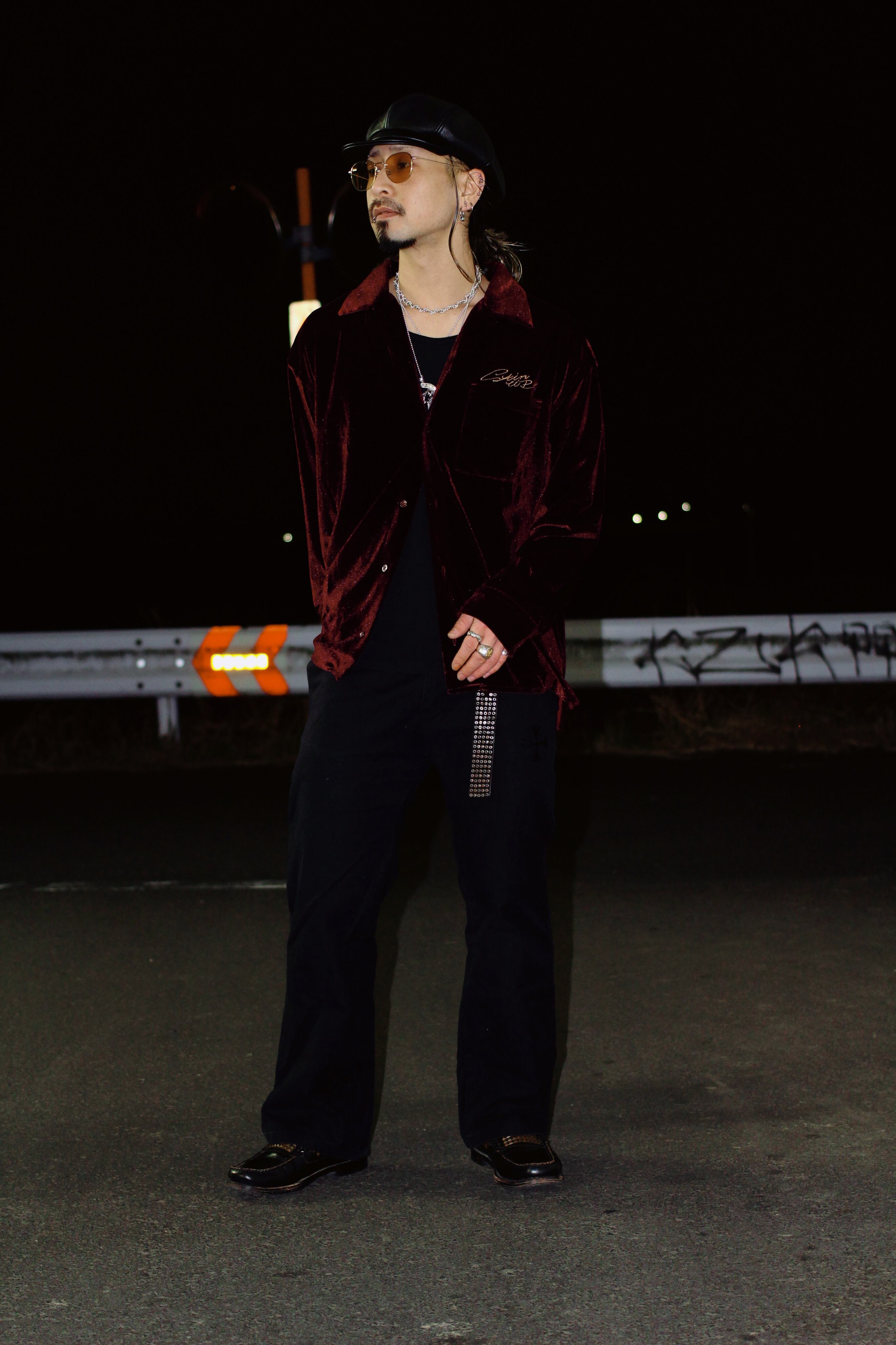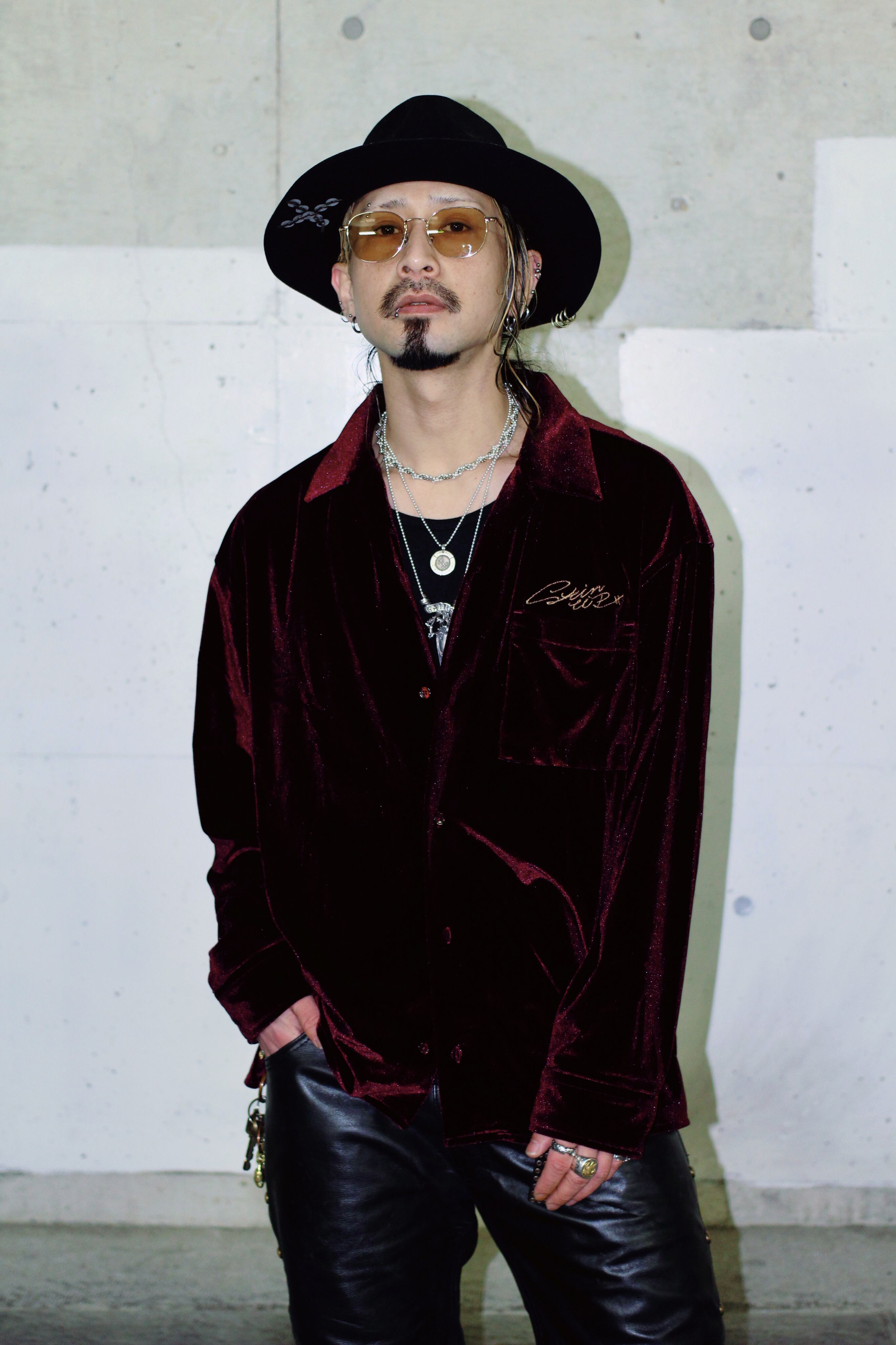 シルエットは、ベロア特有の楊柳感と落ち感を際立たせるため、あえてゆとりを持たせた設計。
