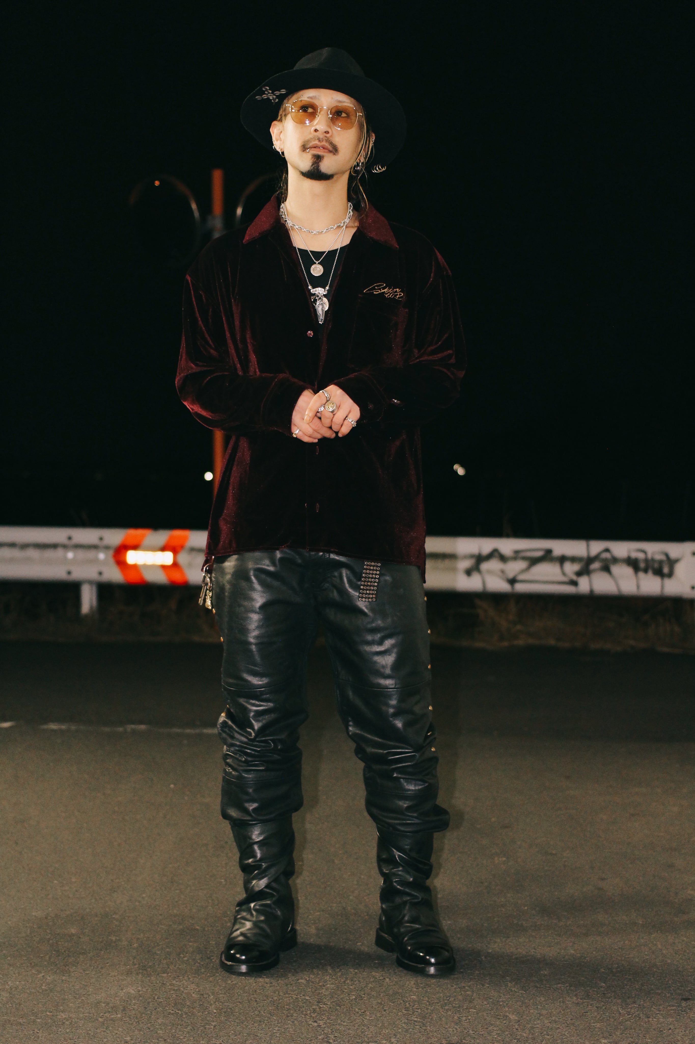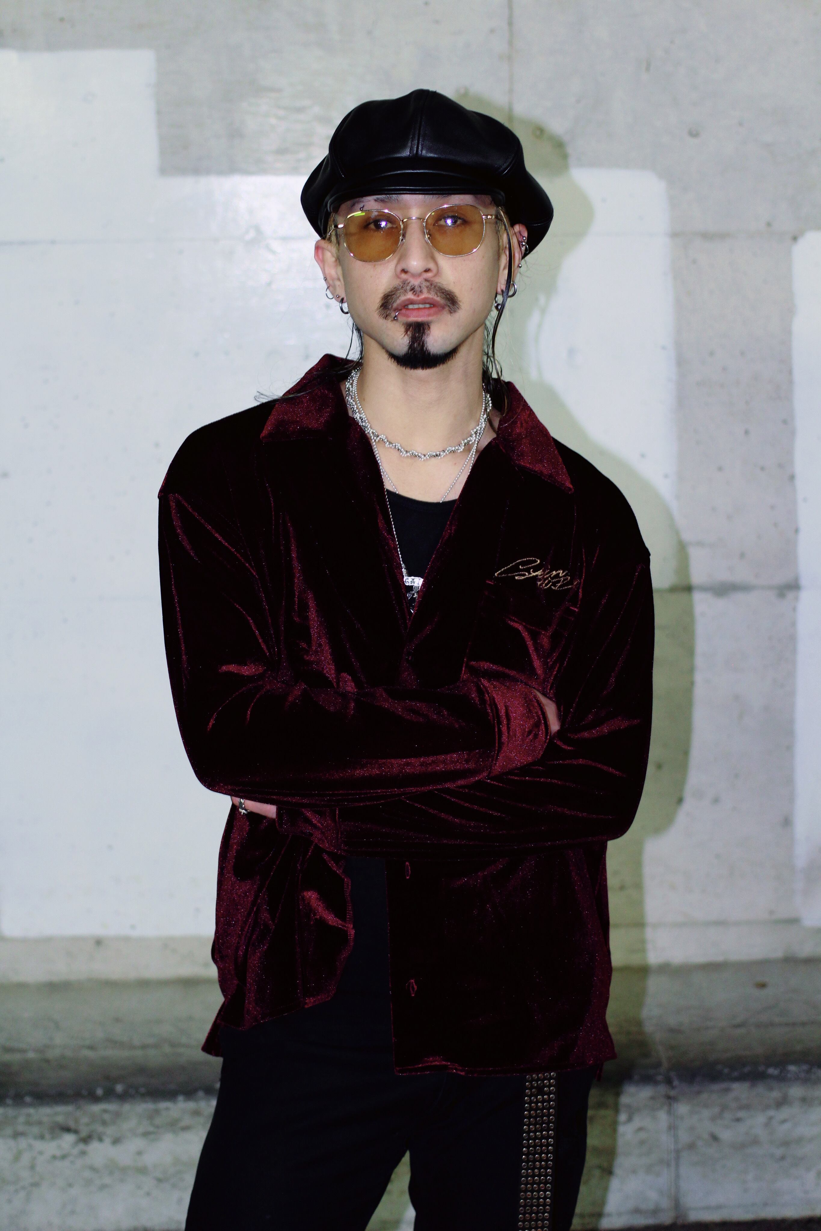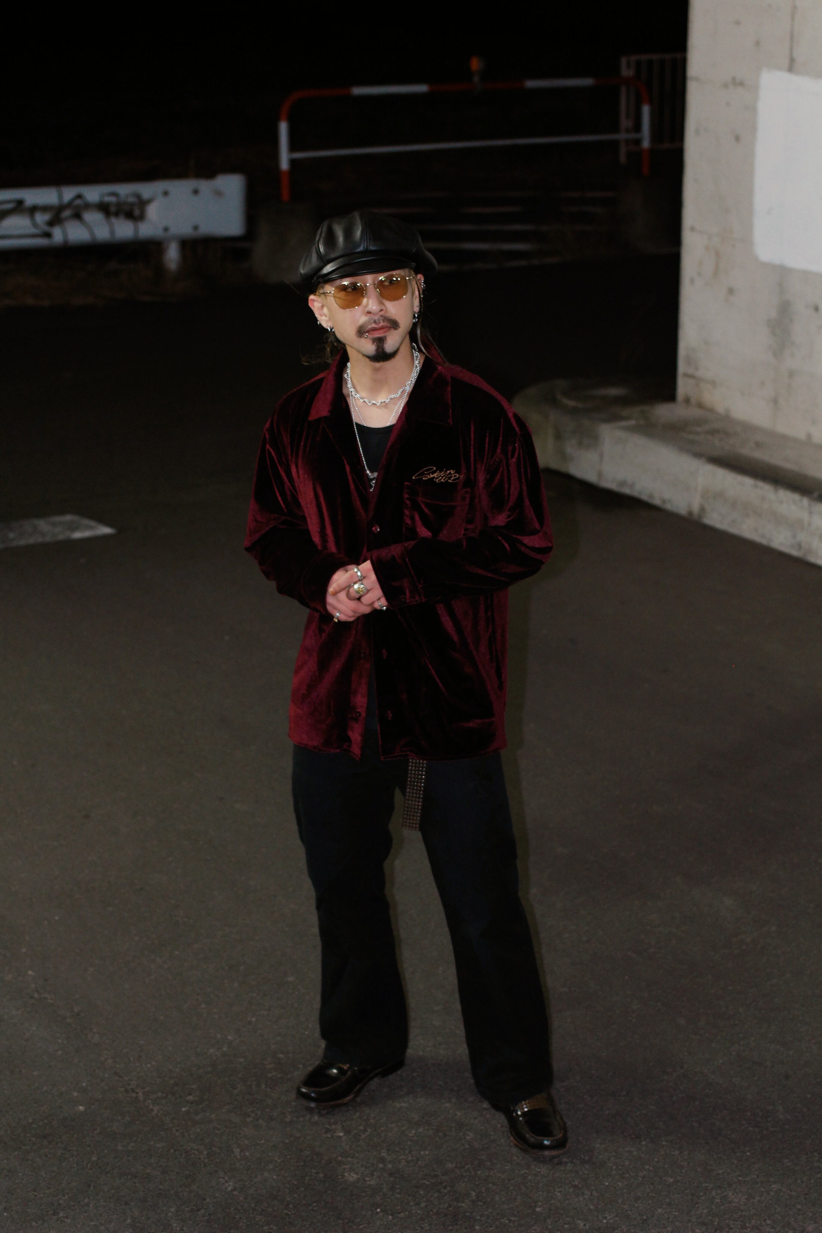 シルエットは、ベロア特有の楊柳感と落ち感を際立たせるため、あえてゆとりを持たせた設計。