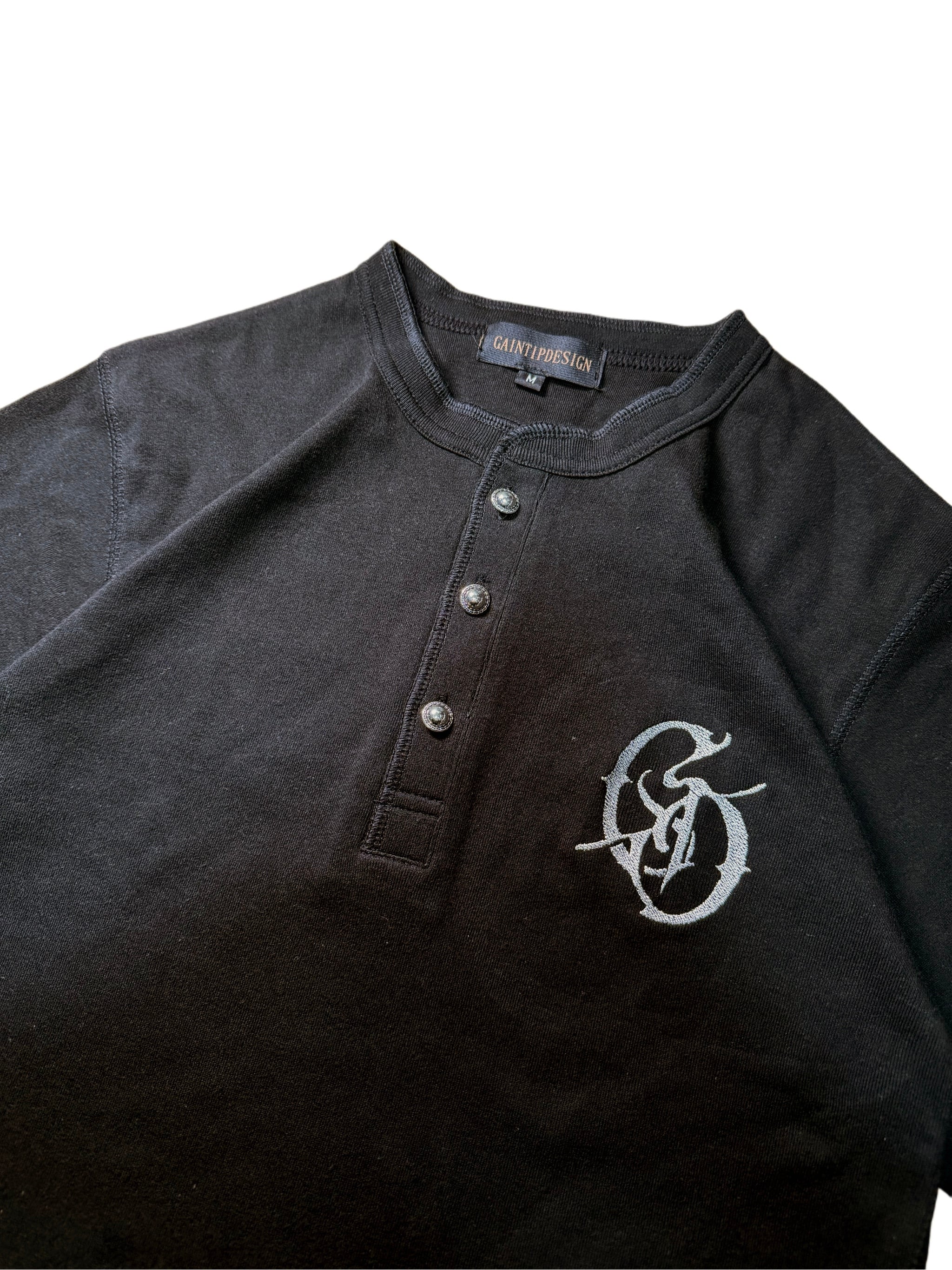 A Henley neck long-sleeve T-shirt created from the unique design perspective of Gain Tip Design.