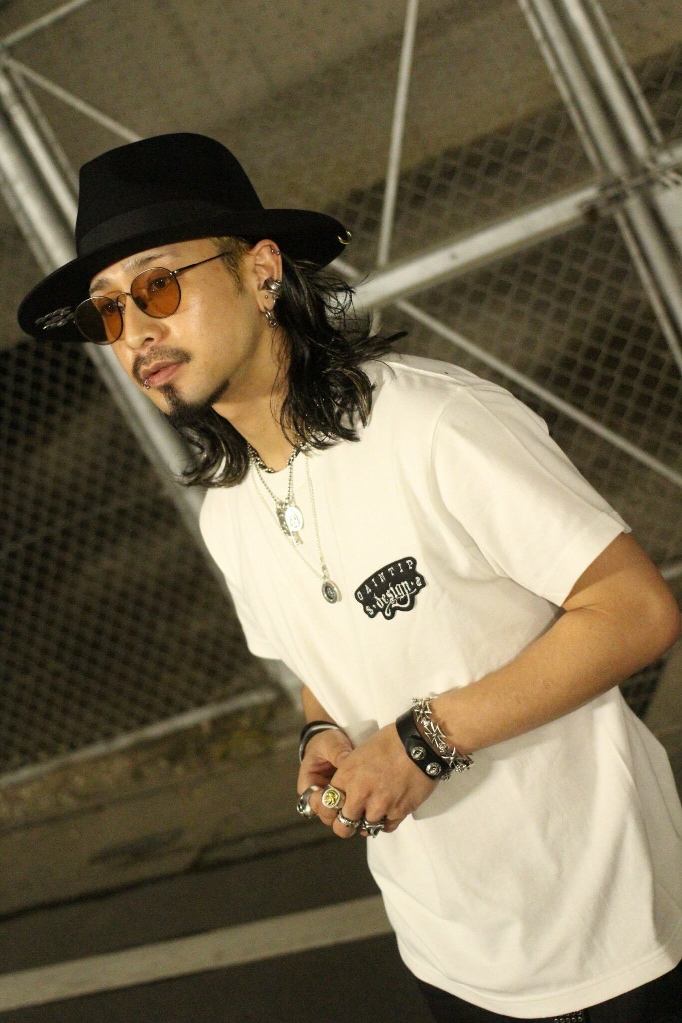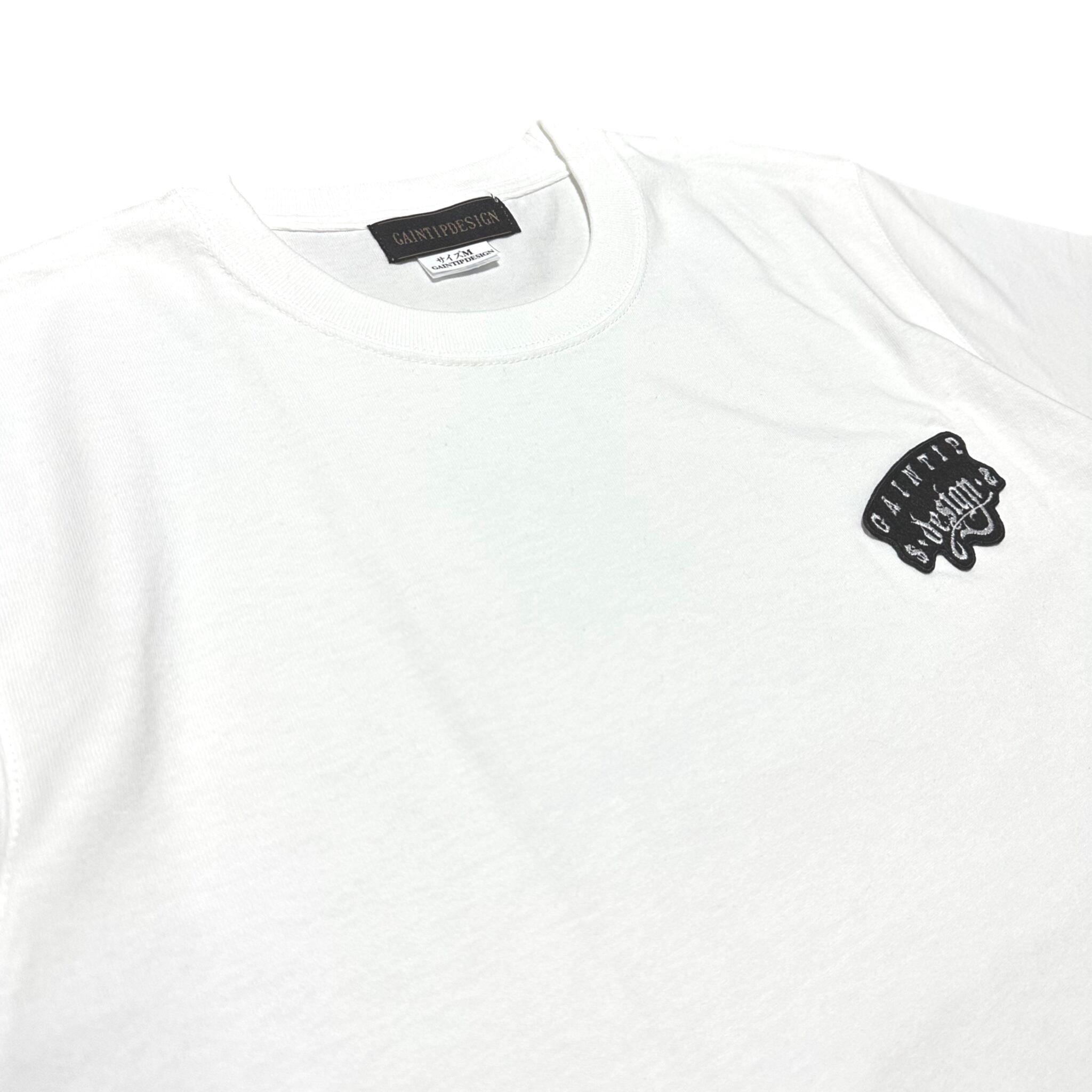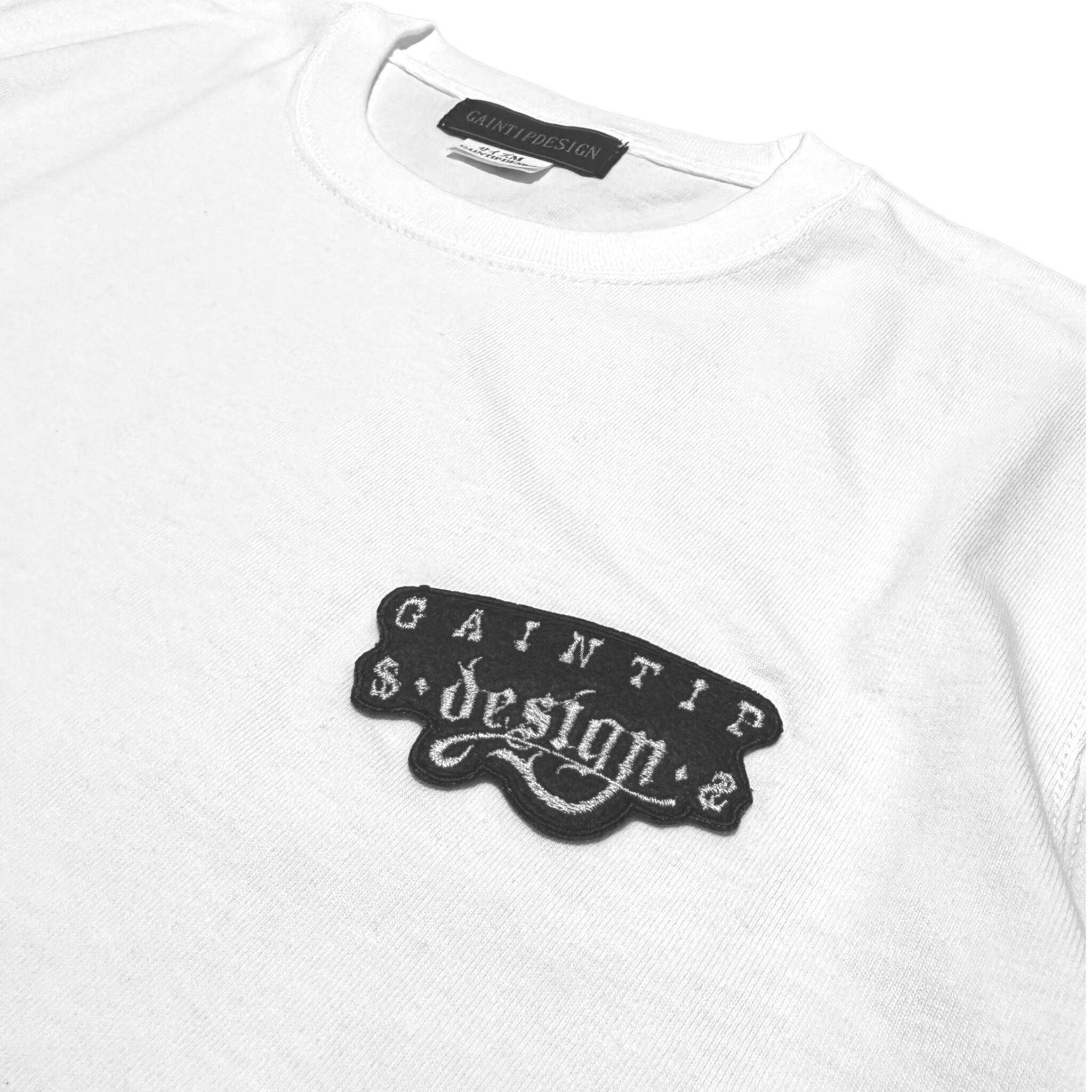 「Gain Tip design」のユニークなアーチ型ロゴを胸にあしらった半袖Tシャツ。