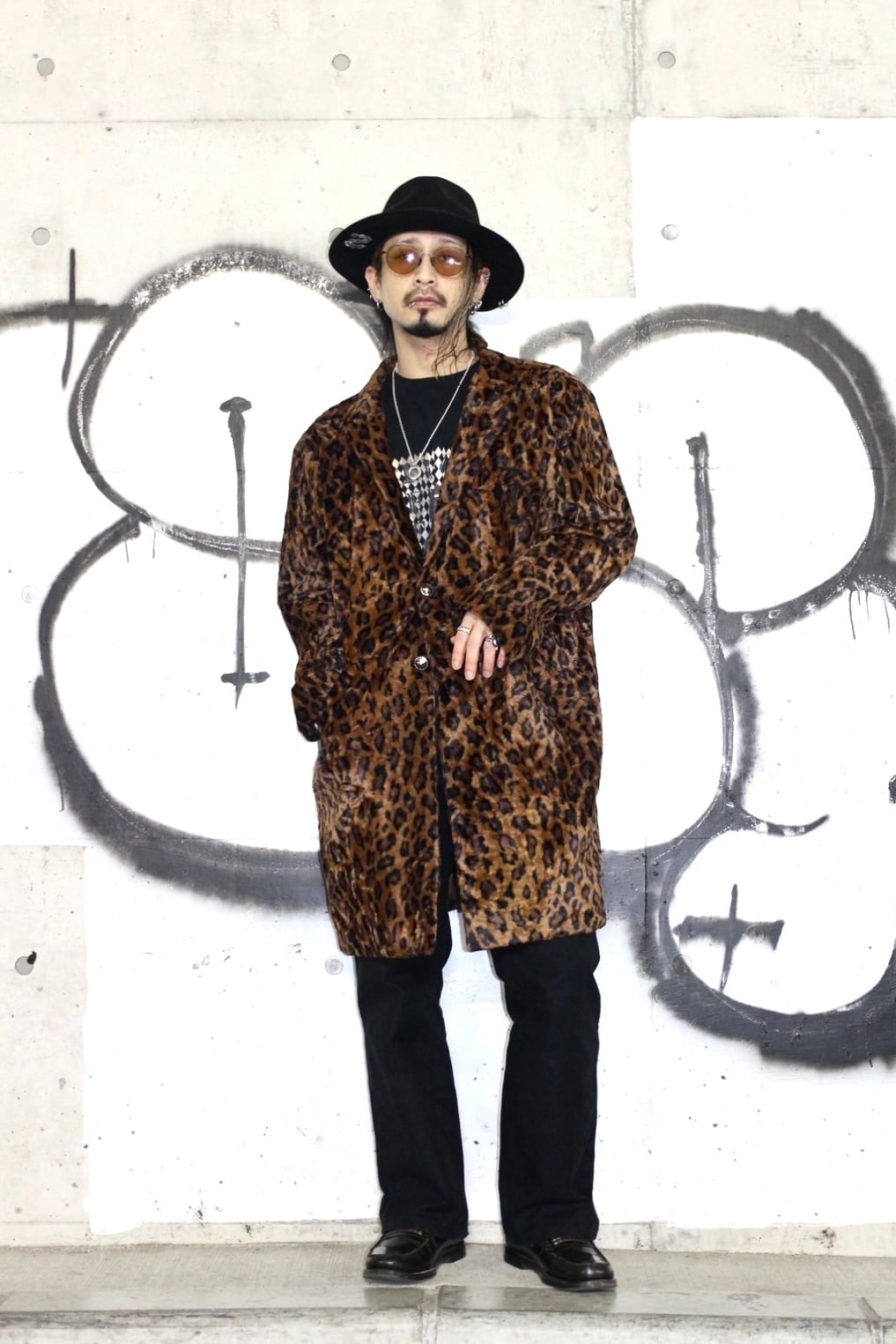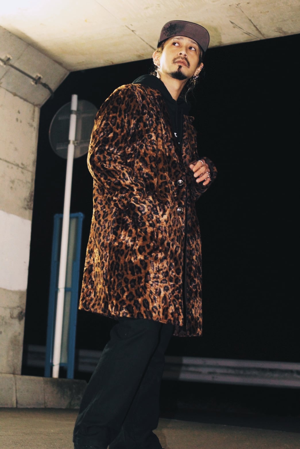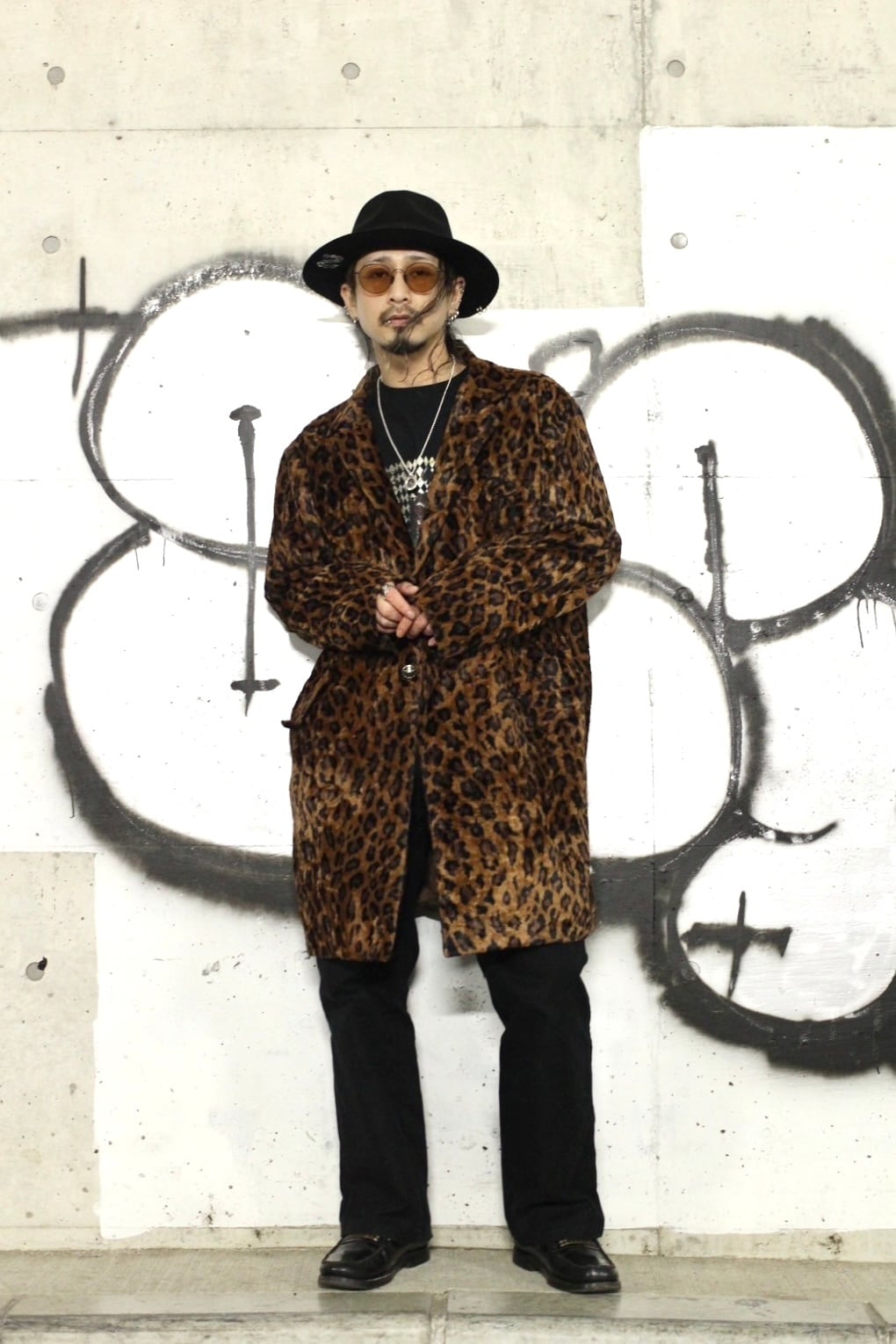 上質で光沢のあるベロアのレオパード生地を使用したチェスターコート。
