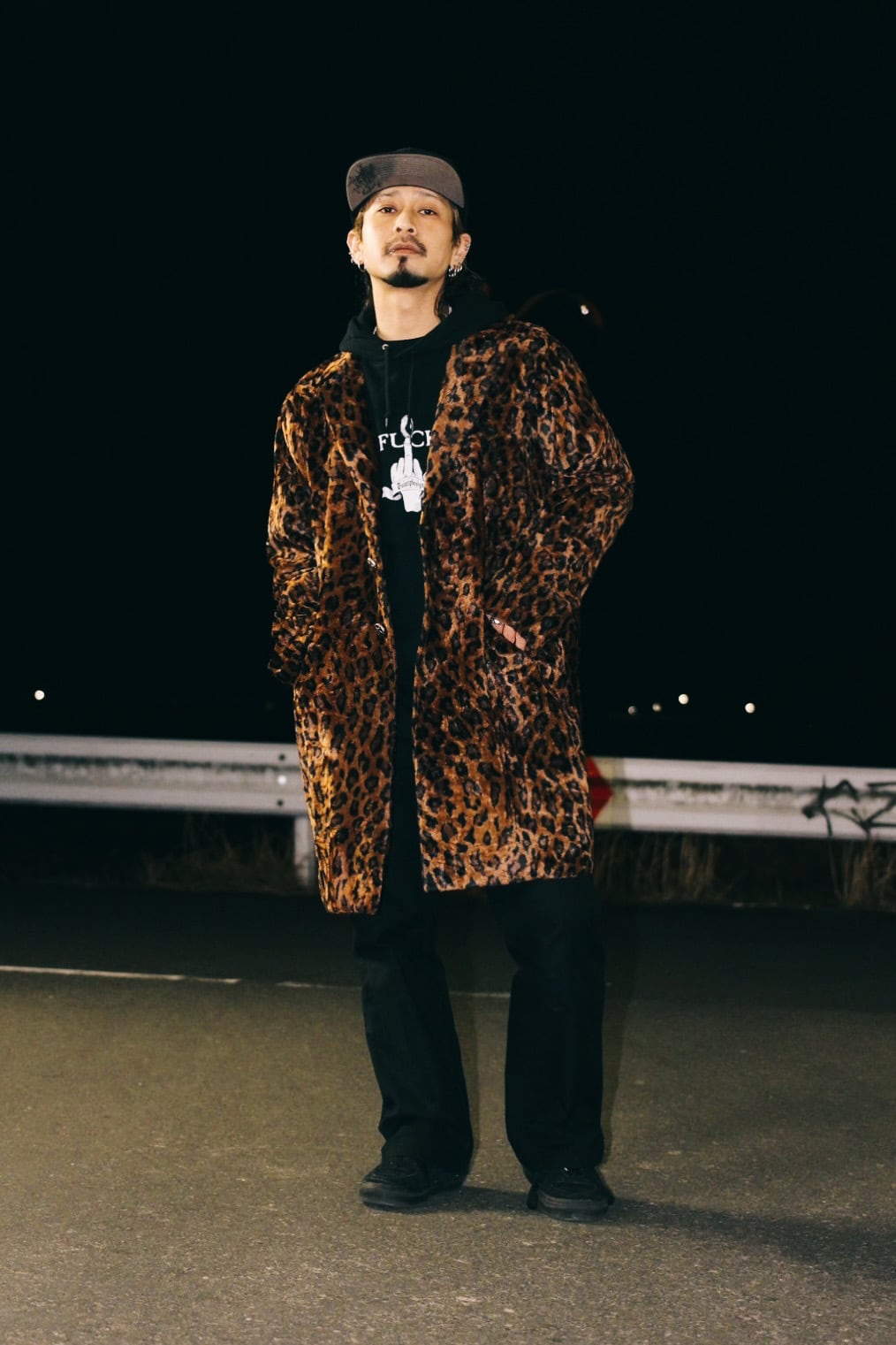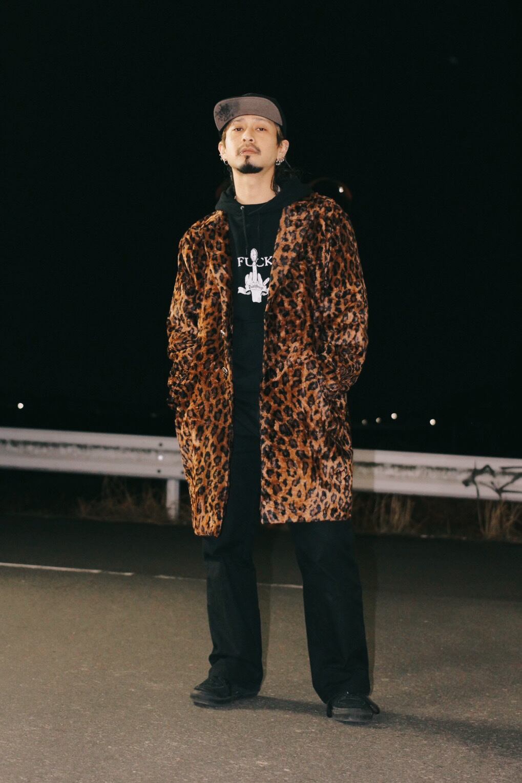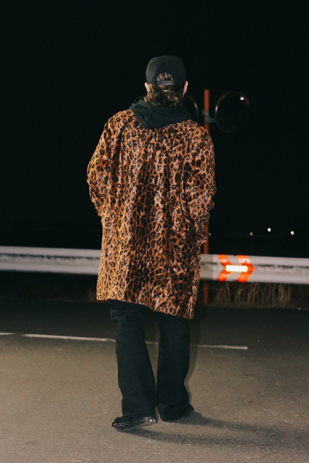 上質で光沢のあるベロアのレオパード生地を使用したチェスターコート。