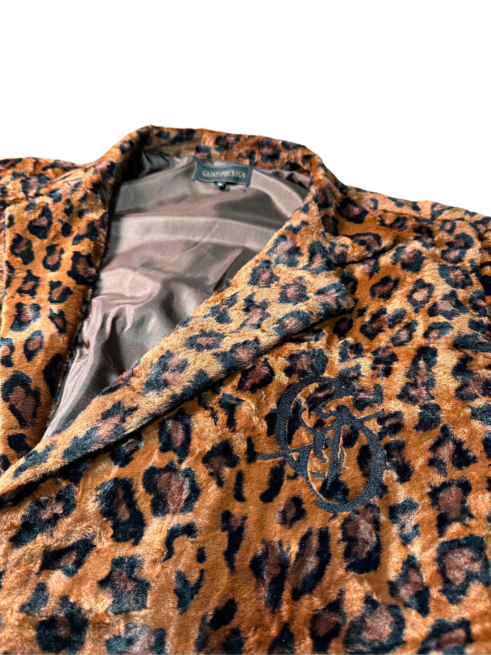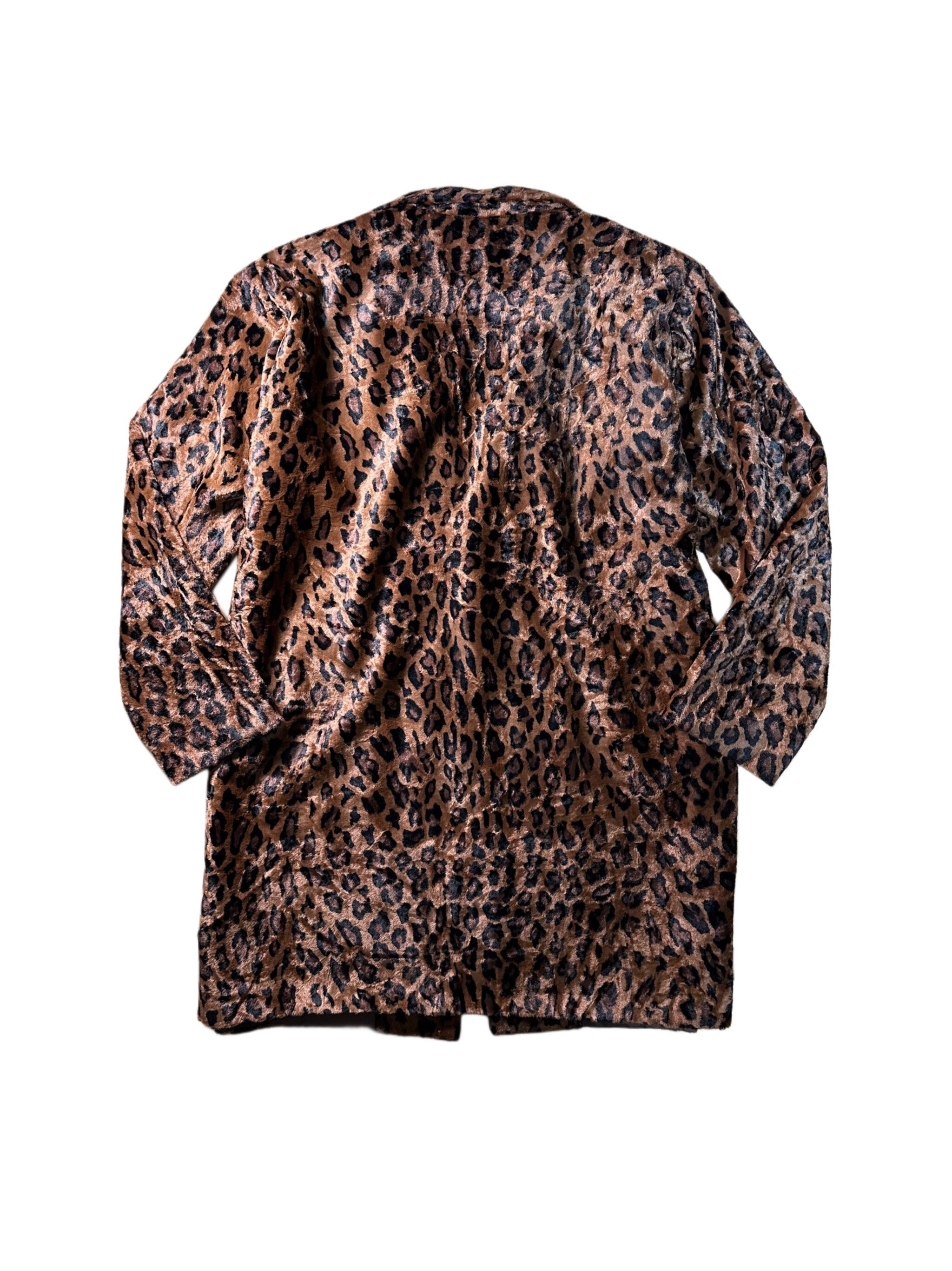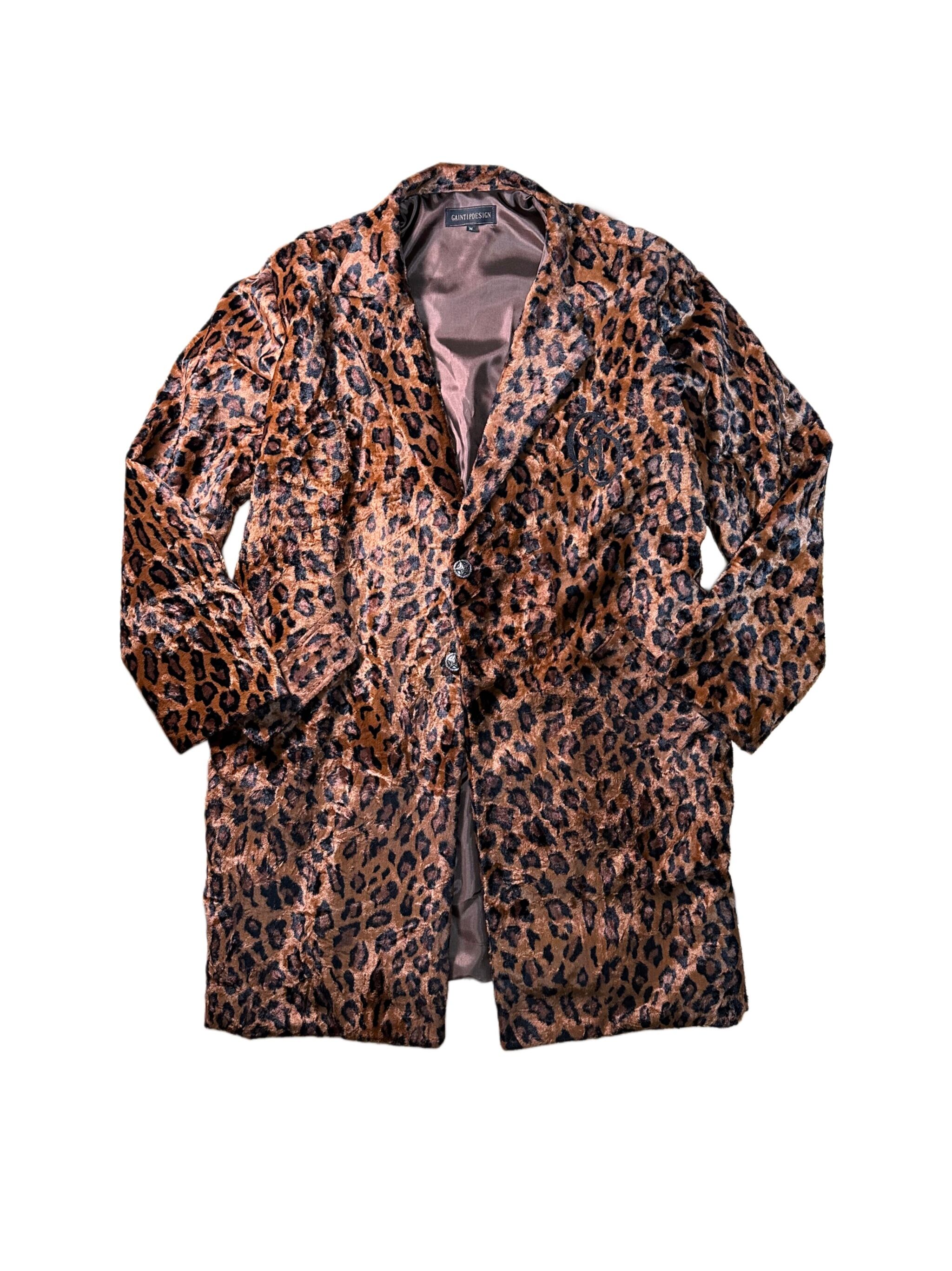 A Chester coat crafted from high-quality, lustrous velour leopard fabric.